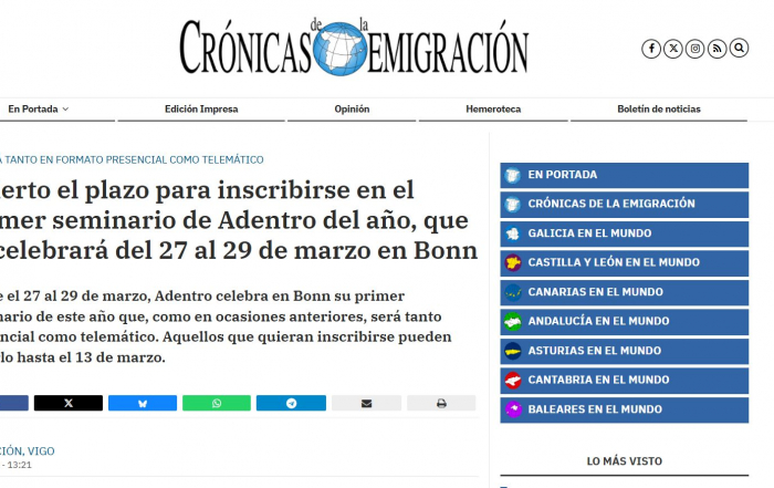 Desde el 27 al 29 de marzo, Adentro celebra en Bonn su primer seminario de este año que, como en ocasiones anteriores, será tanto [...]